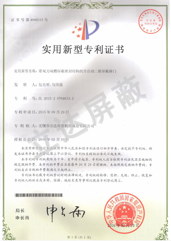 資質證書 專業的電磁屏蔽機房的研發、設計與制造商
